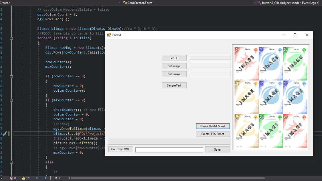 Snippet from a tool that helps to generate a bunch of card from a XML file. To help prototyping, it can create a sheet fitting for printing or to import it to Table Top Simulator.